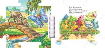 Не треба більше купувати окремо книгу, окремо набір пазлів, бо наша книга-пазл стала чудовим поєднанням цих двох видів дитячого дозвілля. Разом з героями цієї книги вітаємо вас у веселій атмосфері сільського лугу, картинка якого складається з восьми великих пазл-аркушів.
