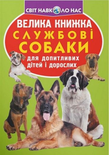 У цій книжці популярно розказано про службових собак, їх зовнішній вигляд, особливості поведінки. Яскраві фотоілюстрації допоможуть дітям краще узнати цих благородних тварин.