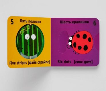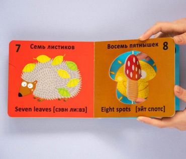 Книжка з яскравими малюнками, виготовлена на якісному товстому картоні, що особливо важливо, коли грати буде зовсім малюк.