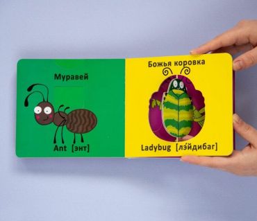 Книжка з яскравими малюнками, виготовлена на якісному товстому картоні, що особливо важливо, коли грати буде зовсім малюк.