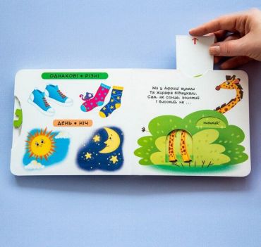 Розвиваюча і навчальна книжка з рухомими елементами, з яскравими, барвистими малюнками, приверне увагу Вашої дитини на довгий час. Гра з книгою перетвориться в захоплююче заняття, сприяє розвитку дрібної моторики, пам'яті та уваги.
