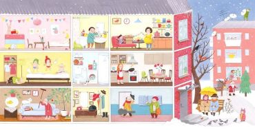 У «Новорічних канікулах» художниця Інна Руда зібрала 10 веселих історій про святкові розваги та події в зимовому місті. На кожній сторінці вирує життя: ось-ось впаде на ковзанці закоханий хлопчина, малюк з’їсть у кав’ярні торт з вітрини, Дід Мороз причепить на ялинку гірлянду, мама підхопить на пательню млинець, який вправно підкинула у повітря, а потім зробить селфі в дитячому поїзді. Про кожну ілюстрацію щоразу можна вигадувати свіжу історію, закручувати нові сюжети, помічати нові деталі та відшукувати загублені речі: чи то повітряну кульку малюка чи рукавички поважного чолов’яги. Це справжнє сімейне видання, яке покращить настрій, захопить і об’єднає дитину й батьків.