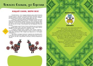Ця книжка відкриє перед вами красу і шляхетність нашого народу. Бо у народному календарі, який формувався віками, не було нічого випадкового. Як і немає жодної випадковості чи зайвини в народних традиціях. Недаремно вони пережили віки. Прочитавши книжку, дитина знатиме весняні народні свята, ігри й забави та навчиться робити чимало мистецьких речей. У світі тисячі народів. А відрізняються вони мовою, культурою і традиціями. Тим і цікаві один одному.