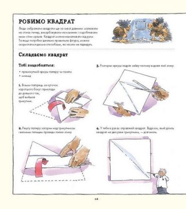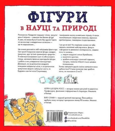 Ця книжка розповість найцікавіші факти про такі прості й водночас важливі фігури: квадрат, трикутник та круг. Навчить вимірювати кути й обчислювати площу, малювати ідеально пропорційні фігури без інструментів і робити з них універсальні конструктори. Діти дізнаються, як за допомогою квадрата планували найдавніші міста, а за допомогою трикутника зводили найміцніші мости, як будували кам’яні кола Стоунгенджу і вимірювали висоту єгипетських пірамід. А ще на юних читачів чекають захопливі майстер-класи, фокуси з фігурами та дивовижні експерименти.