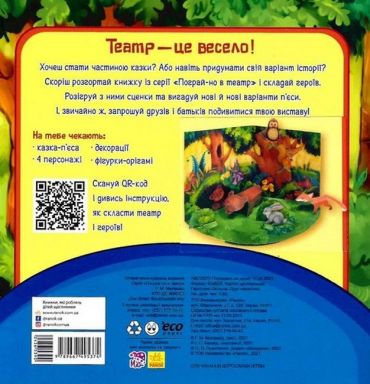 Хочеш стати частиною казки? Або навіть придумати свій варіант історії, у якій тільки ти вирішуватимеш, що буде далі? Тоді швидше розгортай книжку з серії «Пограй у театр» і складай героїв, розігруй з ними сценки та вигадуй нові й нові варіанти п’єси. І, звичайно ж, запрошуй друзів та батьків подивитися твою виставу!