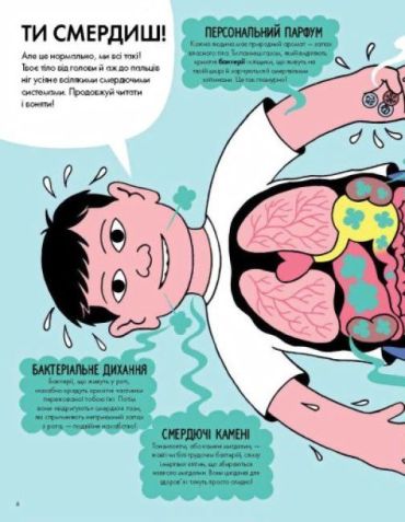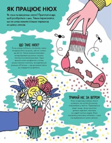 Книга, яка розповість усе про запахи та чи не найголовніше чуття людини — нюх. Як вміння розрізняти аромати рятує нам життя? Чим пахне космос і навіщо вчені створюють синтетичні соплі? Скільки пуків лунає щогодини на планеті? Непересічні наукові факти (перевірені й правдиві, але дуже смішні), практичні завдання (батькам краще заплющити очі й затулити носи), а також вікторина та словник термінів — все для того, щоб відкрити для себе запахи світу по-новому!