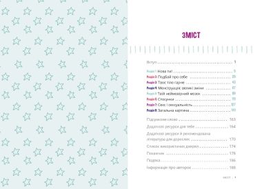 Професійно та по-дружньому авторки говорять про гендер і сексуальність, про самоповагу та стосунки, про те, як протистояти тиску однолітків, і ще про купу важливих речей. Це бодіпозитивний довідник, що допоможе дівчинці віком 10—12 років зорієнтуватися у змінах, які на неї чекають під час статевого дозрівання, і полюбити себе — нову та прекрасну.