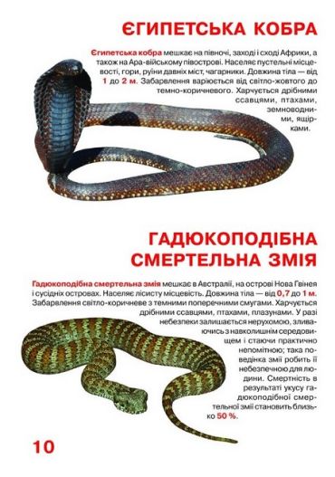Тваринний світ нашої планети дуже різноманітний. Спостерігати за його мешканцями дуже цікаво. У цій книзі популярно розказано про отруйних змій, їх зовнішній вигляд, особливості поведінки. Яскраві фотоілюстрації допоможуть дітям запам'ятати цих небезпечних представників тваринного світу.