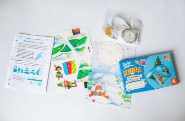 Набір містить: листівку з привітанням, кольорову вкладку з картону, покрокову інструкцію, смужки паперу, намистини, шнур, клей ПВА.