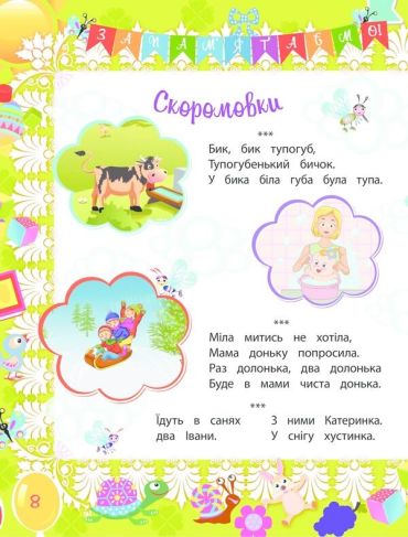 «Що сьогодні почитати малюкові?». Це питання частенько виникає у мам і татусів. Бо хочеться і розважити малюка, і водночас навчити чомусь новому, а ще відповісти на дитячі «чомучки». Як це все поєднати? Ця книжка — найкраще рішення для батьків і чудова забавка для дитини. Тут зібрані найцікавіші казки та кумедні потішки, різноманітні простенькі загадки та скоромовки, лічилочки та всілякі прикмети, розповіді про тварин та задачки на уважність, а ще відповіді на дитячі «чому?».