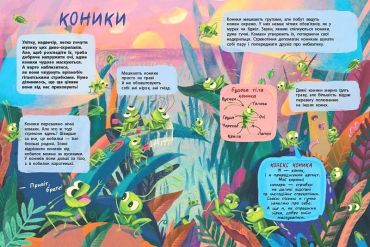 Розгорніть книжку — роздивіться картинки — познайомтесь із таємним життям комах. Дізнайтеся про кодекс бджіл, метеликів, світлячків, коників та інших комах. Вивчайте їхню будову, умови мешкання. Довідайтеся про їхні улюблені справи та страви. Яскраві малюнки залучають до розглядання. Адже інформація швидше і легше сприймається через картинку. Дитина отримує знання за улюбленим інтересом, збагачує словниковий запас.