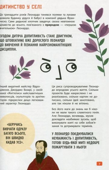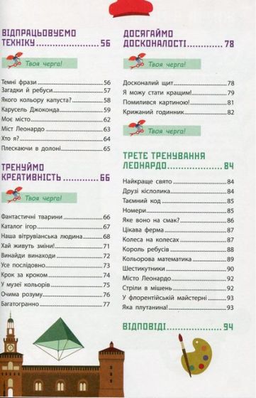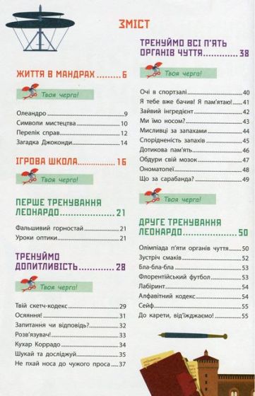 Леонардо да Вінчі — визнаний геній усіх часів. Він досяг успіху в науці, живописі, музиці і навіть кулінарії! Автори цієї книги дослідили біографію та рукописи Леонардо, щоб з’ясувати: як працював мозок майстра. Їхні спостереження супроводжують корисні поради та цікаві завдання, що допоможуть кожному навчитися думати, як флорентійський геній.