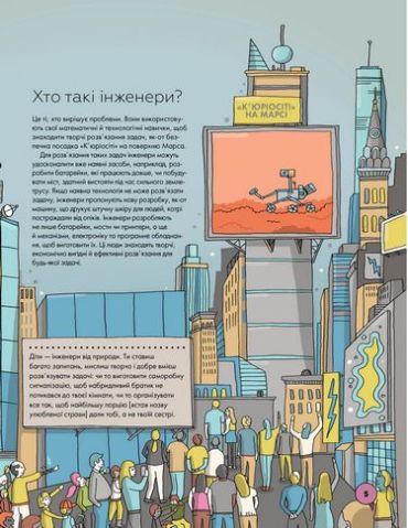 Книга познайомить юних читачів з основними етапами інженерного проєктування і на прикладі дев’яти історій з реального життя доведе, наскільки геніальними можуть бути інженери та їхні винаходи. З’ясуйте, як крок за кроком люди, здатні розв’язати будь-яку проблему, створюють надшвидкий велосипед, усувають затори на дорозі й навіть створюють штучну шкіру.