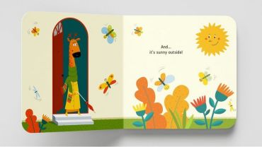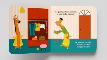 Смішна історія про жирафа, який збирається на прогулянку. Але погода змінюється так швидко, що він ледве встигає перевдягатись знову і знову. Читаючи книжку, дитина зможе вивчити нові слова та вирази англійською.