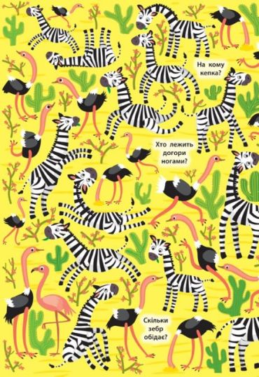 Це видання познайомить дитину із чарівним світом принцес. Виконуючи завдання, маленький розумник розвине уяву, потренує пам’ять та увагу, навчиться міркувати, творчо підходити до вирішення різних завдань і зможе відчути себе справжнім слідопитом! Кожен розворот книжки містить велику барвисту ілюстрацію з безліччю різноманітних кумедних персонажів і запитання, що підкажуть, які несподіванки потрібно шукати на картинці.