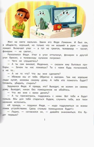 Ваш ребенок уже знает,как работает электрочайник,почему светит лампочка и что находится внутри пылесоса?Пора раскрыть ему все секреты устройства бытовых приборов!Книга расскажет вам о приключенияхмальчика Феди,которые окружают нас каждый день.Маленькие читателисмогут прочитать об устройстве мобильного телефона,компьютера и интернета,телевизора,утюга и холодильника и много-много другого!