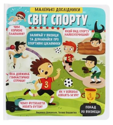 «Маленькі дослідники» вирушають у «Світ спорту». Книжка має понад 30 віконечок, які на кожній сторінці видання матимуть цікавинки про різні види спорту.