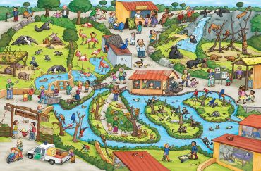 Діти побачать, як крокують стежками зоопарку пінгвіни та проїдуться на ЗОО експресі. Вночі, тут можна переночувати в спеціальних будиночках, попередньо прогулявшись перед сном з ліхтариком і розглядаючи, як засинають звірі. На сторінках вімельбуха можна побачити, що відбувається в зоопарку взимку і влітку і познайомитися з найголовнішим героєм зоопарку золотистим лемуром. Він зустрічає всіх біля входу і супроводжує на кожній сторінці книги, а на останньому розвороті в оранжереї тропіків Мадагаскару знайомить зі своєю родиною. Золотистий лемур зникаючий вид, саме тому зоопарк Цюріху опікується цими тваринами.