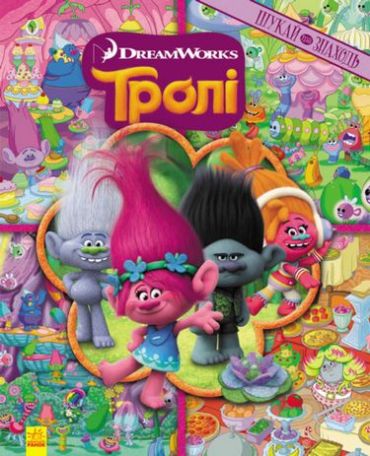 «Шукай та знаходь» – це яскраві тролістичні книжки. Разом з улюбленими різнокольоровими героями мультфільму «Тролі» відшукуйте безліч предметів, що сховалися на сторінках цих книжок. За всі знайдені речі в якості нагороди поласуйте тістечком! :)