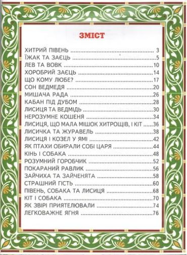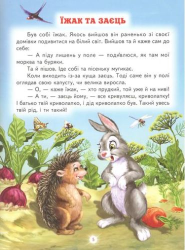У цій книжці зібрані кращі українські народні казки про тварин. У них добро завжди перемагає зло, розумний — дурного, сміливий — боягуза, а жадібність та зневага до інших караються. На прикладах казкових персонажів діти зможуть осягнути складний світ людських взаємин.