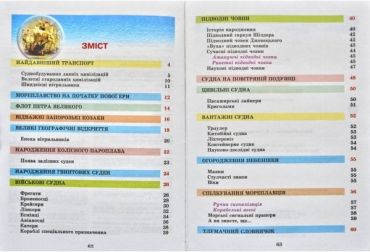Обсяг видання - 64 сторінки з кольоровими картинками і цікавою інформацією з області суднобудування. Ця книга буде цікавою як для дітей молодшого, так і старшого шкільного віку. Її мета - розширити кругозір дитини, розвинути в неї допитливість, дати відповіді на запитання з історії та розвитку суднобудування. Ця книга розповість тобі про довгий шлях, який проліг від першого плоту до сучасного атомоходу. Пліт був іграшкою хвиль, зараз людина керує величезними морськими та океанічними суднами з допомогою складних приладів, з допомогою електроніки. Ти дізнаєшся про човни, зроблені сокирою, про те, що першими вийшли в море на кораблях-галерах - не єгиптяни, як вважалося раніше, а інший стародавній народ Середземномор'я - фінікійці, що найкращі дерева для спорудження суден - кучері тридцяти-сорока метрів висотою зростали в Фінікії - на території приморської смуги нинішніх Сирії та Лівану. Вітрильники - так звані фелюги - принесли з собою досконально нове, і докорінно змінили все суднобудування. Ця книга розповість тобі коротку, але захоплюючу історію від перших видовблених човнів до потужних кораблів, про народження перших навігаційних пристосувань, які допомагали давнім мореплавцям долати водні простори. Ти дізнаєшся про творців перших підводних човнів, які крок за кроком наближали людство до розкриття багатьох таємниць підводного царства, познайомишся з історією народження першого в світі пароплава та залізного судна. Сторінки книги розкажуть про тіпі військових, вантажних науково-дослідних сучасних суден і про ті, чому лайнери іноді називають "плавучими будинками відпочинку", а траулери - "плавучими заводами", і чому криголами здатні долати пакові льоди. Ти не тільки прочитаєш про різноманітні типи суден різних часів, а й побачиш їх на кольорових малюнках.