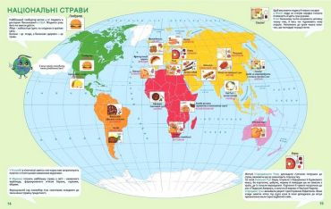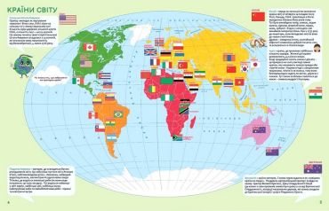 Яскравий атлас, доповнений наліпками, допоможе найменшим зробити перші кроки у пізнанні георафії.