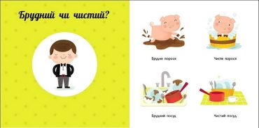 Що велике, а що — маленьке? Яке порося брудне, а яке — чисте? Хто добрий, а хто поганий? Коли ти веселий(-а)? А коли сумний(-а)? Обертай колесо та дізнавайся про різні протилежності. Із милими ілюстраціями навчання буде цікавим і веселим!