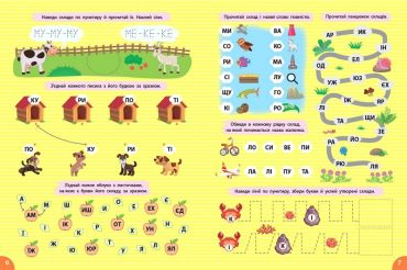 в слова, доповнювати слова потрібними буквами та складами, а також виконає вправи на розуміння прочитаного й повправляється із цікавими ігровими прописами та наліпками. Прості завдання в цікавому оформленні стимулюватимуть до пізнання і вивчення матеріалу, необхідного для дошкільняти.