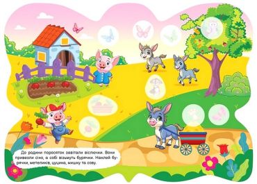 На сторінках даної книги малюки зустрінуть улюблених тваринок і за допомогою наліпок поринуть разом із ними в дивовижні пригоди. Також яскраві наліпки допоможуть дитині потренувати дрібну моторику, розвинути увагу, уяву, логічне мислення та посидючість.