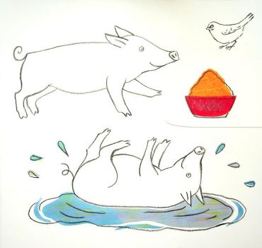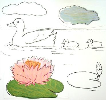На одному розвороті дитина побачить щось на зразок мультика: ось мама- качка з каченятами пливе по ставку, а відкриваєш клапани і птахи один за одним пірнають у воду. Варто лише відгорнути віконце і собака розірве - газету, порося бовтнеться в калюжу, а козенята припинять буцатися.