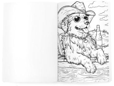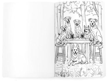 Розмальовка «Веселі будні песиків» — це 16 ілюстрацій-фантазій на тему «що, якби песики були людьми».