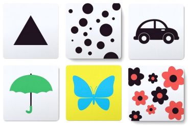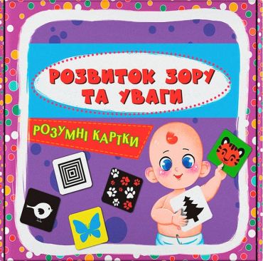 Набір "Розвиток зору та уваги" включає 30 двосторонніх мнемокарток (60 зображень), які сприяють правильному формуванню зорового апарату немовлят, розвитку зорової пам'яті, уваги, а також фокусуванню зору. Займатися з картками можна вже з перших тижнів, тому що період від народження до 6 місяців дуже важливий для розвитку зору дитини. У цей час інтенсивно формується очне яблуко й ділянки мозку, що відповідають за приймання та обробку візуальної інформації.