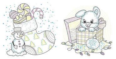 Новорічні свята на носі! І подарунки — їхні незмінні супутники. Тут ви знайдете сюрпризи на будь-який смак. Тож хутчіш беріть пензлики й воду та нумо забарвляти подаруночки яскравими барвами! Фарби вже є на сторінках, тож одяг залишиться чистим, а дітлахи — задоволеними.
