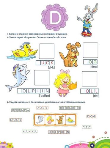 Герой книжки — кролик Добрик — запрошує малюків до своєї веселої школи у світ англійської абетки. Із таким цікавим другом дитина вивчить назви літер англійської абетки, навчиться їх писати.
