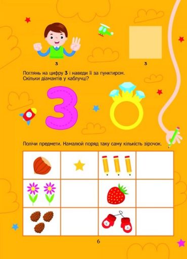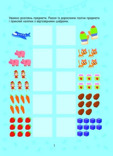 Із цією книжкою маленькі розумахи познайомляться з цифрами, лічитимуть від 1 до 10 і навпаки та навіть розв’яжуть свої перші приклади! Цікаві завдання та яскраві малюнки допоможуть малечі розвинути уяву та асоціативну пам’ять, а разом із наліпками дітлахи потренують дрібну моторику. Веселих занять!