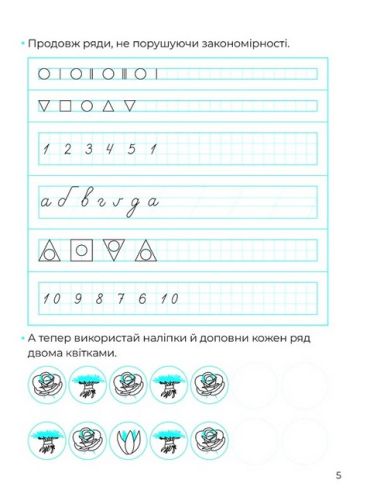Ці книжечки будуть дуже корисні для тих маленьких школяриків, які зовсім нещодавно пішли до першого класу і/або пишуть ще не зовсім охайно — а практики у школах не вистачає. Логічні завдання тут легкі та цікаві — тож дітки самостійно зможуть виконувати їх, заодно обводитимуть пунктирні лінії цікавих форм та вклеюватимуть наліпки.