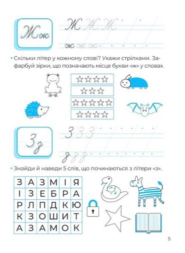 Ці книжечки будуть дуже корисні для тих маленьких школяриків, які зовсім нещодавно пішли до першого класу і/або пишуть ще не зовсім охайно — а практики у школах не вистачає. Логічні завдання тут легкі та цікаві — тож дітки самостійно зможуть виконувати їх, заодно обводитимуть пунктирні лінії цікавих форм та вклеюватимуть наліпки.