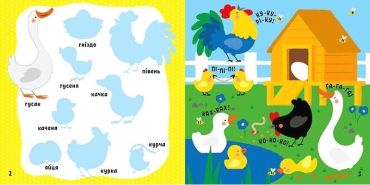 «Ку-ку-рі-ку!» — кричить півник на паркані. «Дир-дир» — працює в полі трактор. А маленький кролик на грядці хрумає капусту. Як чудово на фермі! Із книжкою малюк познайомиться зі свійськими тваринами та птахами, дізнається, що росте на городі, і ще чимало цікавого з життя за містом. Роздивляючись та називаючи малюнки, наклеюючи яскраві наліпки, дитина розвиватиме мовлення й поповнюватиме свій словниковий запас.