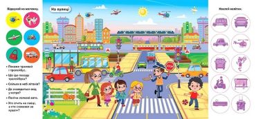 Завдання даної книги допоможуть вашій дитині розвинути мислення, кмітливість, увагу та дрібну моторику. Малюк відчує себе дослідником, бо шукатиме різні предмети, рослини, звірів, транспорт, відповідатиме на запитання та наклеюватиме яскраві наліпки.