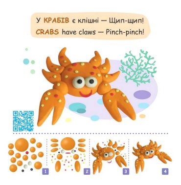 Коли дитина бачить і чує, в неї розвивається пам'ять. Обговорення побаченого і почутого сприяє розумінню. Якщо ж дитина бачить, чує, обговорює і робить, формуються навички. Ліплення — це той тренажер, що розвиває сенсорні і моторні вміння та психічні процеси малюка. Покрокова інструкція, подана у виданні, допоможе дитині вміло зліпити різних істот. Завдяки простим фразам малюк зможе озвучити кожен виріб та придумати до нього сюжетну гру. Звуконаслідування спонукатимуть до мовлення дітлахів-мовчунів. Якщо ж у вас росте юний білінгв, то ця книжка чудово підійде для вивчення перших англійських слів.