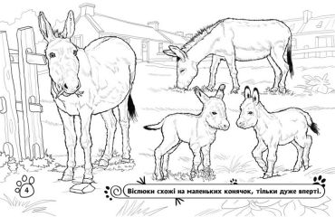 Тварини в цій розмальовці зображені в натуралістичному стилі й виглядають як живі! Кінь дивиться, як у дворі грають лошата, коллі стереже отару овець, кролик хрумкає соковитою морковкою. Бери мерщій олівці та розмальовуй тваринок!