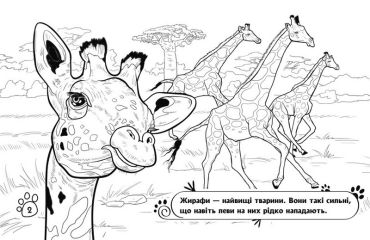 Тварини в цій розмальовці зображені в натуралістичному стилі й виглядають як живі! Хамелеон ховається серед гілок, кенгуреня з цікавістю виглядає із сумки мами-кенгуру, родина слонів іде до водопою. Бери мерщій олівці та розмальовуй тваринок!