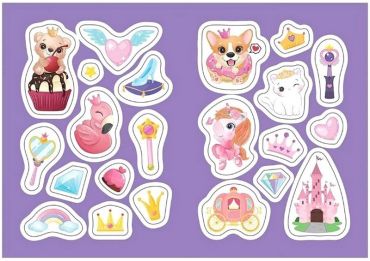Книжечка-розмальовка з яскравими наліпками для дівчаток. Тематика її це казкові принцеси, принци, білий кінь та все те, що полюбляють маленькі мрійниці. Розмальовуємо малюнки без фарб та олівців, лише звичайною водою та пензликом! Справиться кожен. Малюнків у наборі 8.