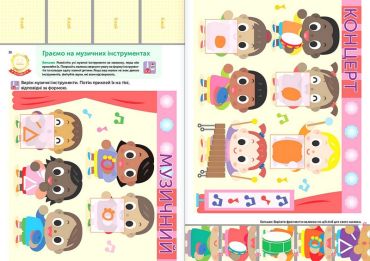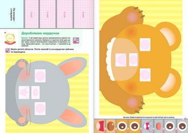 Виконуючи веселі вправи, з яких складається книжка, малюк бавитиметься і водночас вчитиметься правильно тримати ножиці, клей-олівець та маніпулювати ними.