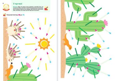 Коли дитина виконає вправу, можна поговорити з нею про те, що зображено на сторінці. Маля може показати й назвати тварин, об’єкти та кольори. Поміркуйте разом, які предмети на ілюстрації більші, а які менші. Або порахуйте зображені об’єкти.