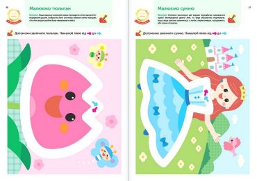 Кожне завдання ретельно розроблене таким чином, щоб розвивати конкретні навички. Проте малюку також дуже корисно буде поговорити з вами про картинки, які він бачить. На цьому етапі надзвичайно важливо плекати любов до навчання, тому сторінки цієї книжки не обов’язково проходити у якійсь визначеній послідовності. Якщо маля виявляє інтерес до певної вправи, займайтеся, доки стане цікавості. Якщо ні — зробіть перерву чи перегорніть на іншу, цікавішу сторінку.