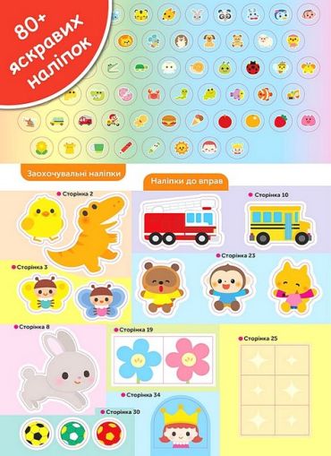 80+ яскравих наліпок використовуються в завданнях в ролі винагороди за виконану працю!