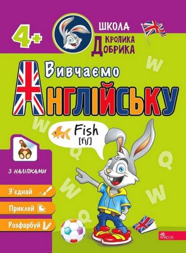 Герой книжки — кролик Добрик — запрошує малюків до своєї веселої школи у світ англійської мови. Із таким цікавим другом дитина вивчить англійською назви тварин, кольорів, членів родини, овочів та фруктів, навчиться вітатися та рахувати до десяти.