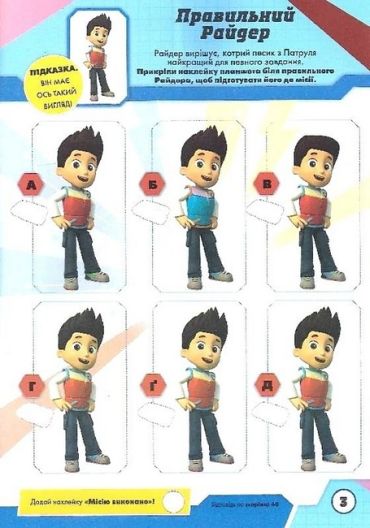 Гайда до нових пригод разом із Щенячим патрулем! Заплутані лабіринти, цікаві головоломки і навіть рухлива лялька-дергунчик, яку ти зможеш створити власноруч! Покажи свої знання, художні вміння та допоможи песикам впоратися із завданнями та труднощами, які виникають на їхньому шляху.