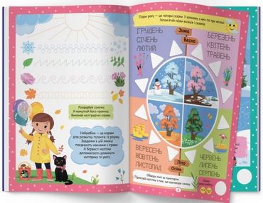 У книзі є 100 нейроналіпок, які відповідають темам: пори року, дні тижня, час доби. Це допоможе дитині краще запам’ятати нову інформацію та розвинути творче мислення.
